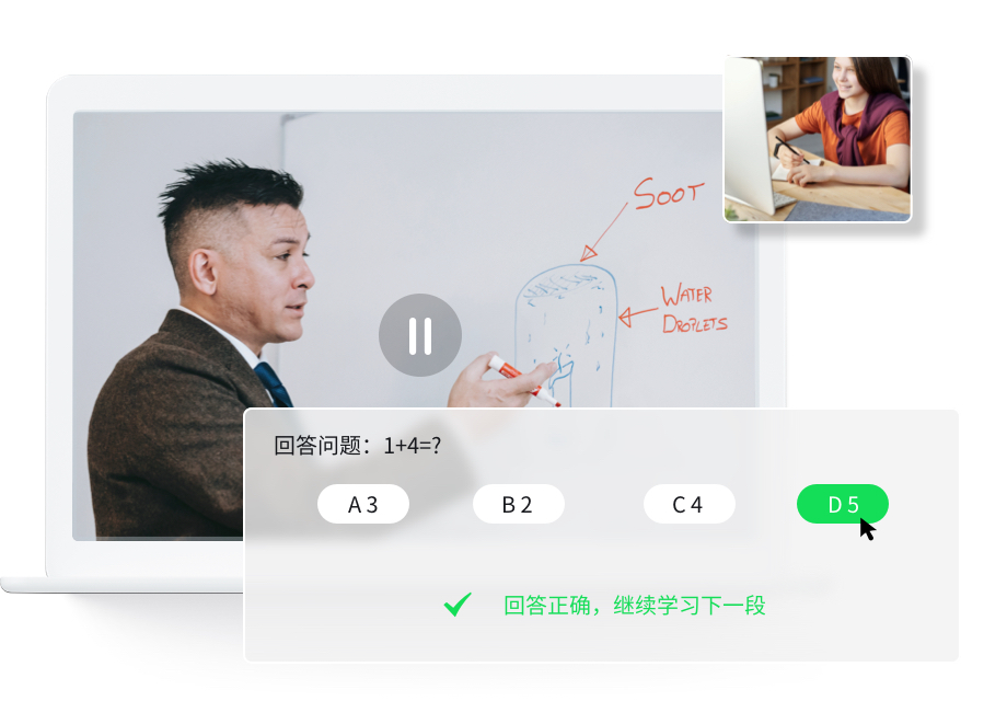 老师和学生音视频流、白板内容、课件内容同步录制,还原真实上课场景,供学生回放复习